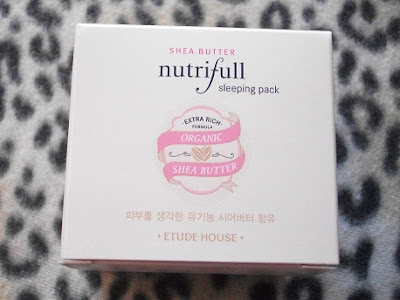 The outer packaging of the nutrifull SHEA BUTTER sleeping pack is kept in beige/ brown and has the description in Korean and English on it.
